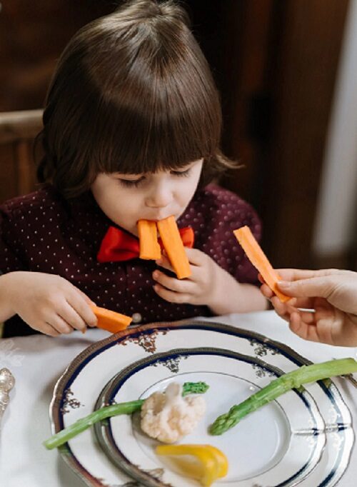 - Sente à mesa junto com a criança e coma com ela a mesma comida.