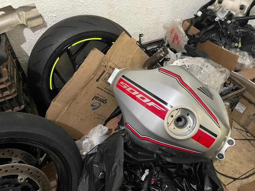 Segundo o registro policial, no desmanche clandestino foram localizadas centenas de peças usadas, todas sem nota fiscal que comprove procedência. O trabalho de investigação revelou que elas podem ser de motos roubadas na região, nos últimos meses. Inclusive em alguns casos de latrocínio – roubo seguido de morte.