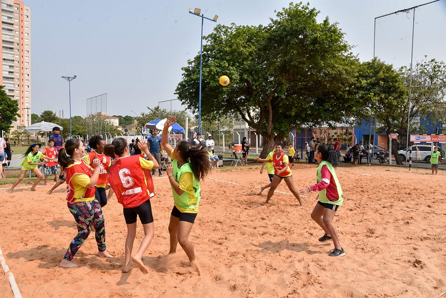 O Lago Azul recebeu domingo (11) mais de 200 crianças e adolescentes no festival de handebol. As atividades foram realizadas nas quadras poliesportiva e de areia. Também foi montada uma quadra na grama.
