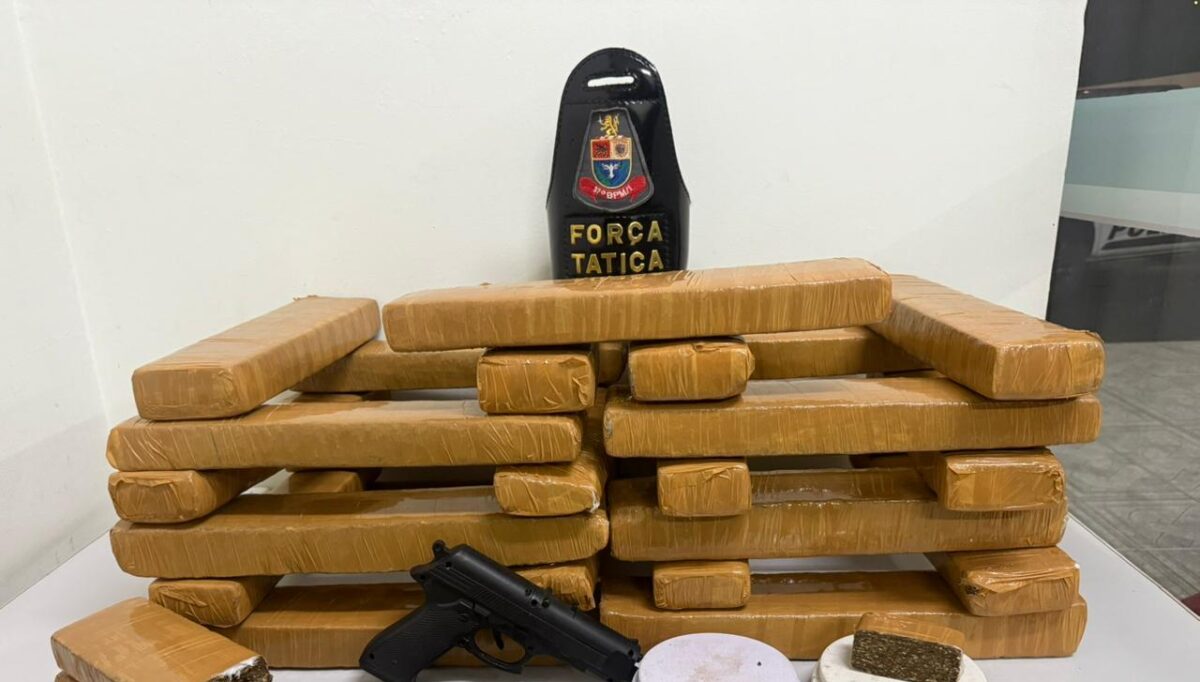 Durante a abordagem, a equipe realizou a vistoria no veículo e localizou dois tijolos de maconha. Diante do flagrante, os policiais prosseguiram com diligências até a residência do suspeito, localizada no Jardim Bom Sucesso, onde foi encontrado um verdadeiro depósito de entorpecentes. No interior do imóvel, havia uma caixa contendo diversos tabletes de maconha, além de balanças de precisão, um simulacro de arma de fogo e materiais utilizados para o fracionamento, preparo e embalo das drogas.