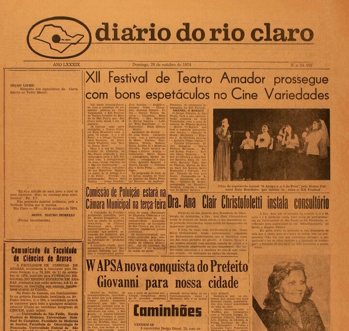 ►XII Festival de Teatro Amador prossegue com bons espetáculos no Cine Variedades. Vai tendo prosseguimento, com a presença de numeroso público, no Cine Variedades, o XII Festival de Teatro Amador do Estado de São Paulo, que Rio Claro sedia desde o dia 16 passado.