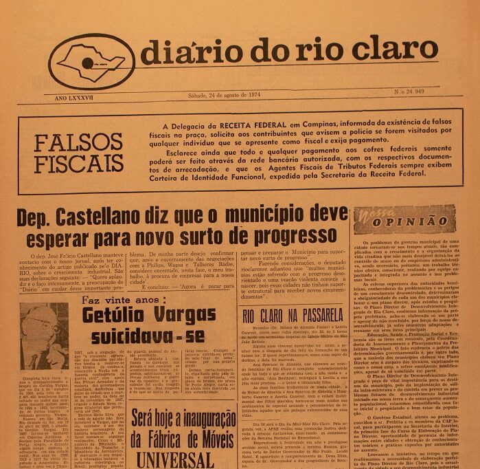 ► Dep. Castellano diz que município deve esperar novo surto de progresso. O dep. José Felício Castellano manteve contato com o nosso jornal, após ter conhecimento do artigo publicado pelo DIÁRIO, sobre o crescimento industrial. “Quero aplaudir e o faço intensamente, a preocupação do “Diário” em cuidar desse importante problema”.