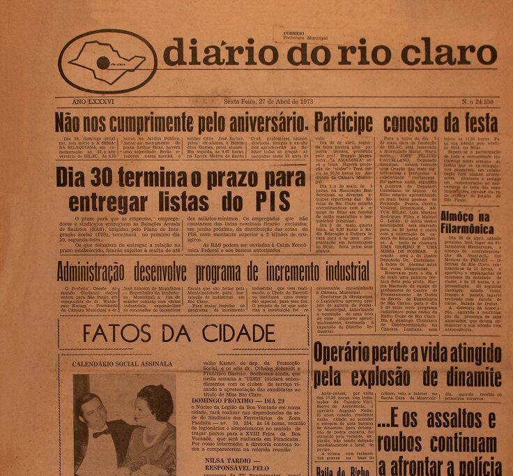 ►Administração desenvolve programa de incremento industrial. O Prefeito Oreste Armando Giovanni viajou ontem para São Paulo, em companhia do dr. Waldemar Karam – Presidente da Câmara Municipal e do dr. José Lincoln de Magalhães – Engenheiro da Prefeitura Municipal, a fim de manter contato com vários industriais, expondo-lhes as concessões de incentivos fiscais que são feitas pela Municipalidade para instalação de indústrias em Rio Claro.